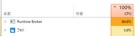 タスクマネージャ上では"Runtime Broker"という表記だが、フォト(Microsoft.Photos)を強制終了すると収まることから、それによるものと判明。